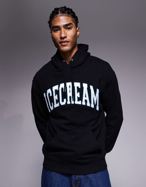 ICECREAM – Svart huvtröja med påsytt collegetryck