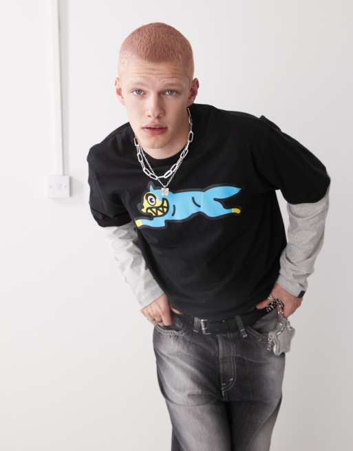 Icecream – Svart och flerfärgad t-shirt med två lager och "springande hund"-motiv