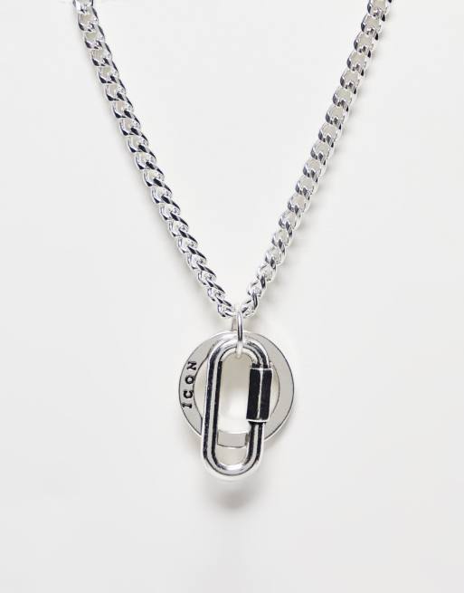 Icon Brand – Antikt silverfärgat halsband med pansarkedja och hänge med koordinater