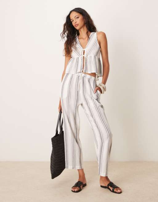Iisla & Bird – Grå, randiga strandbyxor med ledig passform, del av set