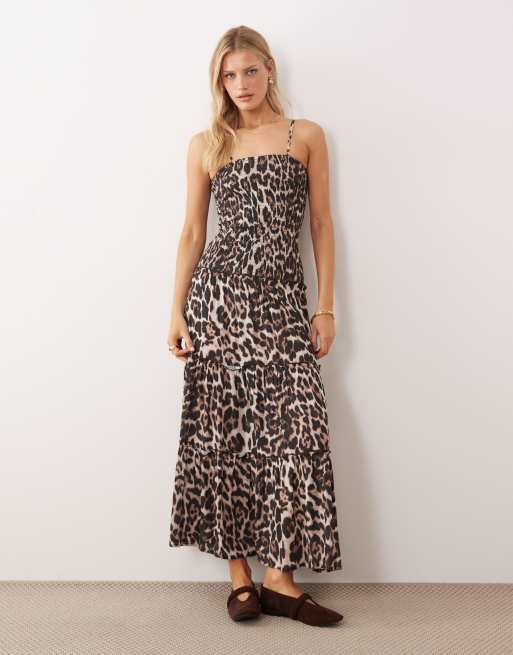Iisla & Bird – Leopardmönstrad strandklänning i maxilängd med smockad detalj