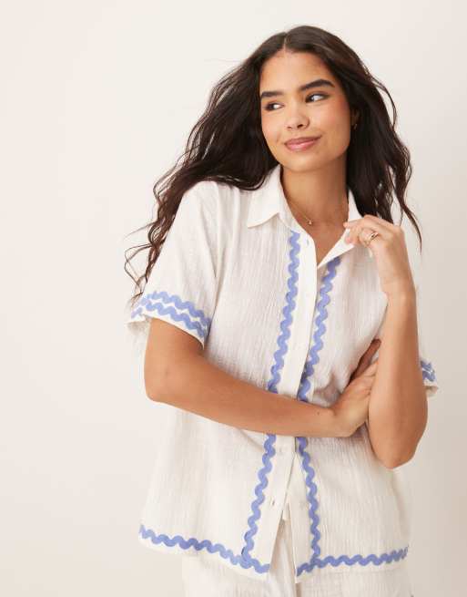 Iisla & Bird – Vit strandskjorta med korta ärmar och sicksack-kant, del av set