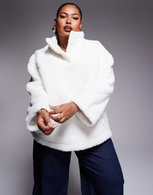 In The Style Plus – Gräddvit tröja i teddy med kort dragkedja