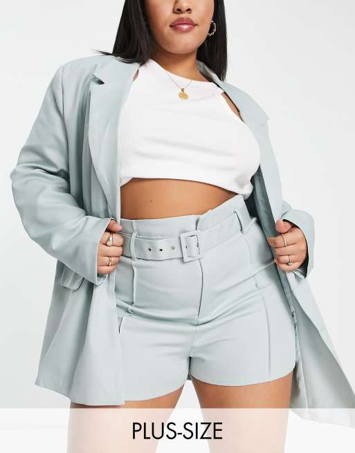In The Style Plus x Dani Dyer – Blå figursydda shorts med hög midja och skärp, del av set