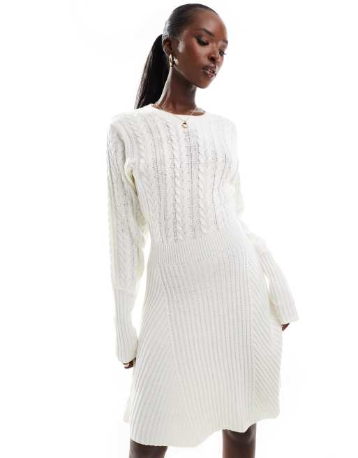 In The Style – Krämvit, kabelstickad tröjklänning i skaterstil och minilängd
