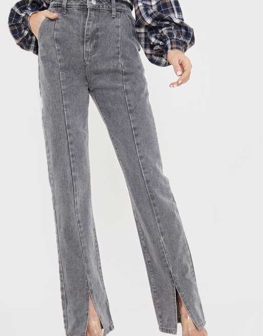 In The Style x Olivia Bowen – Grå jeans med raka ben, hög midja och slits framtill