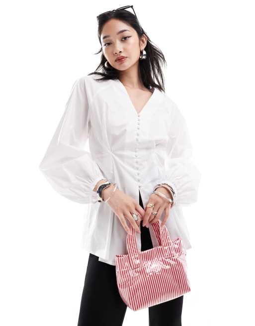 InWear – Helve – Vit, figurnära blus i bomull med knappar