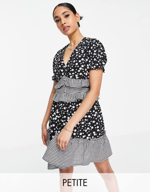 Influence Petite – Mixmönstrad blommig miniklänning med volang