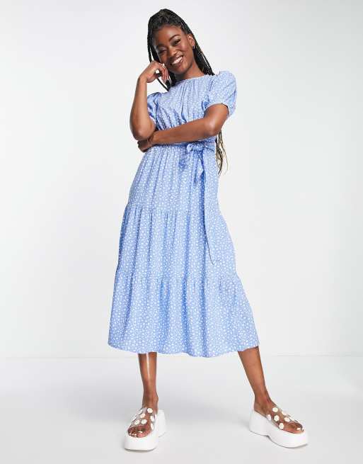 Influence – Blå, blommig, panelsydd midiklänning