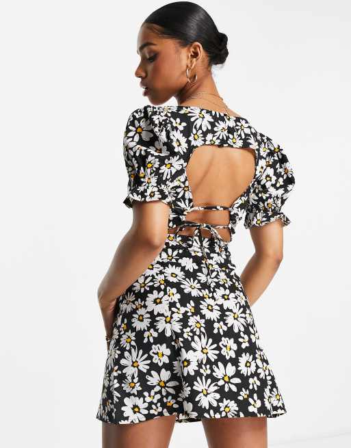 Influence – Blommig miniklänning med utskurna detaljer baktill