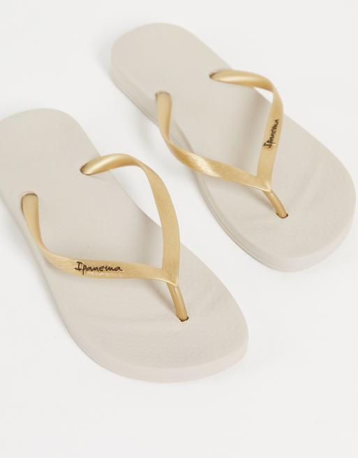 Ipanema – Anatomica – Beige och guldiga flip flops