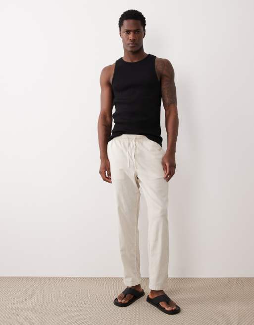Jack & Jones – Beige, avsmalnande byxor i linnemix