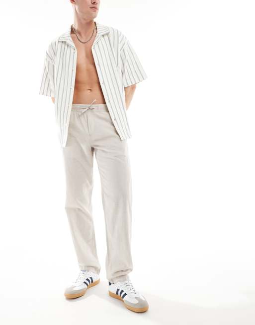 Jack & Jones – Beige byxor i linnemix med dragsko
