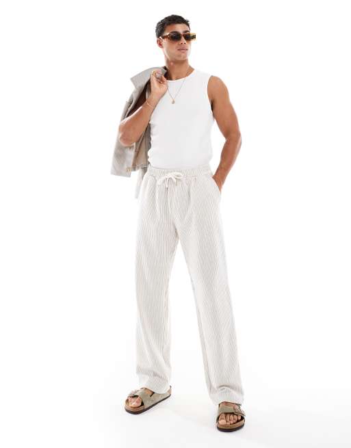 Jack & Jones – Beige, randiga, lediga byxor i kräppad jersey