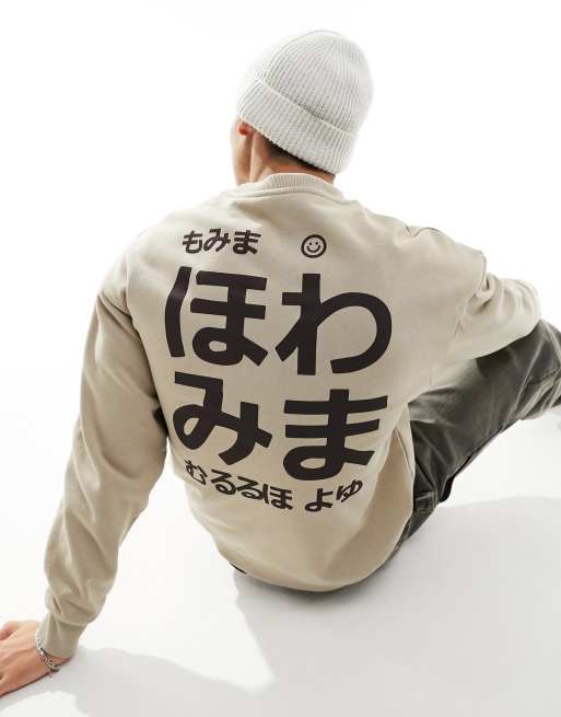 Jack & Jones – Beige sweatshirt i oversize med japanskt tryck