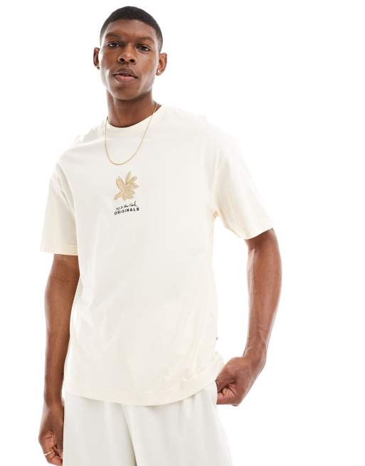 Jack & Jones – Beige t-shirt i oversize med 3D-blommor