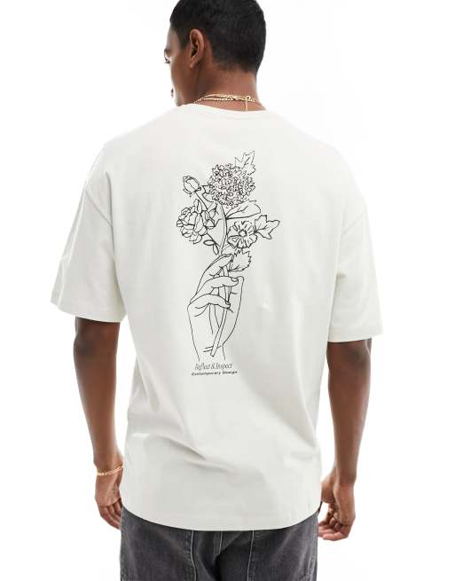 Jack & Jones – Beige t-shirt i oversize med blomtryck baktill