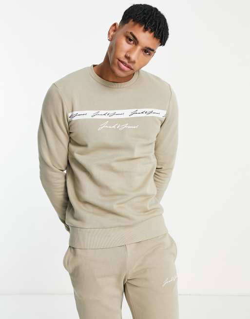 Jack & Jones – Beige träningsoverall med logga på bröstet