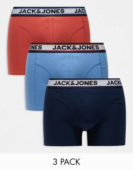 Jack & Jones – Blå trunks med kontrasterande midjeresår, 3-pack