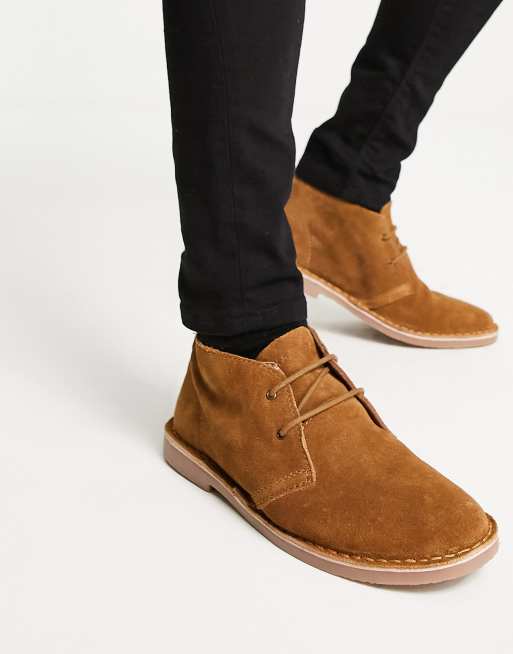 Jack & Jones – Cognacsfärgade kängor i mocka