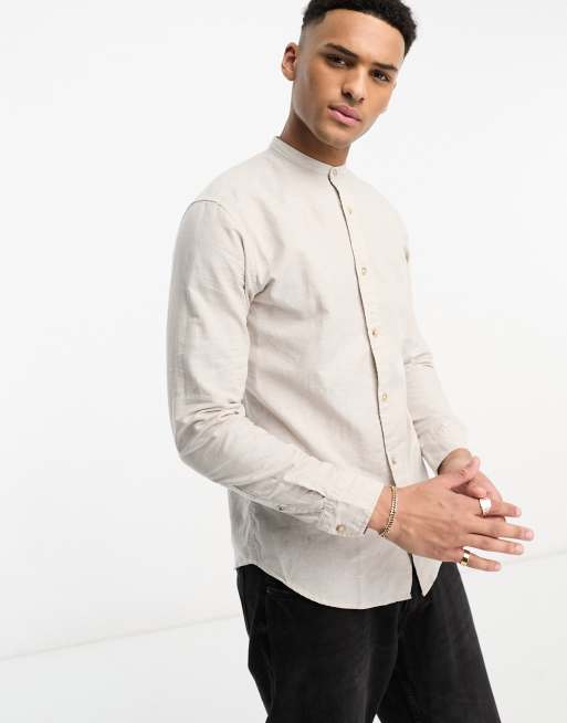 Jack & Jones – Essentials – Beige linneskjorta med murarkrage