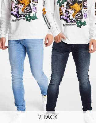 Jack & Jones – Essentials – Liam – Mörkblå och ljusblå skinny jeans, 2-pack