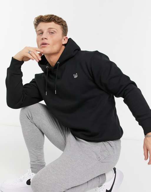 Jack & Jones – Essentials – Svart huvtröja i oversize med hundlogga
