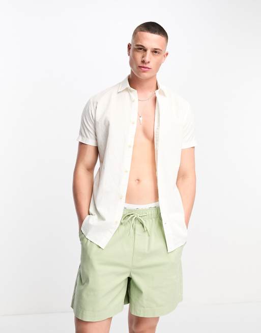 Jack & Jones Essentials – Vit skjorta i linne med kort ärm