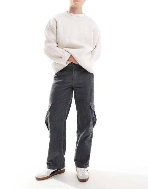 Jack & Jones – Grå manchesterbyxor i cargostil med vida ben