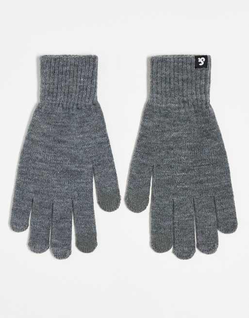 Jack & Jones – Grå, stickade vantar med pekskärmsfunktion