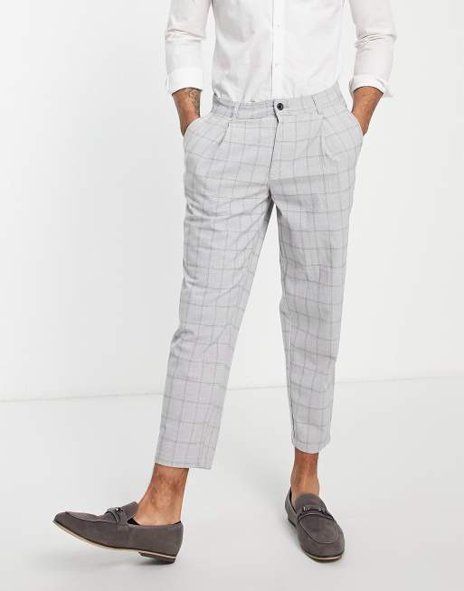 Jack & Jones Intelligence – Grårutiga, vida byxor i kort design