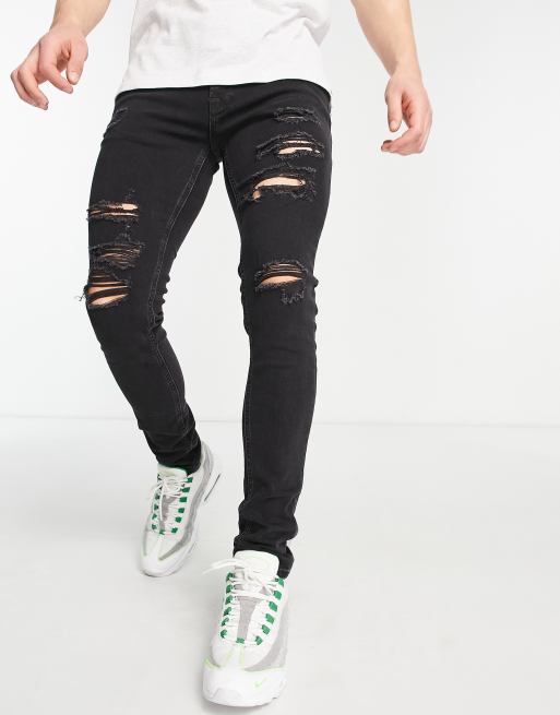 Jack & Jones Intelligence – Liam – Svarta slitna jeans i skinny passform