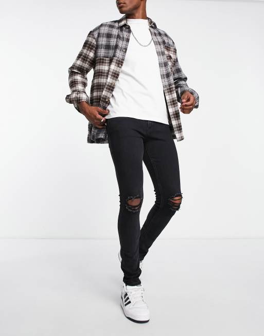 Jack & Jones Intelligence – Liam – Svarta, urtvättade skinny jeans med slitna detaljer