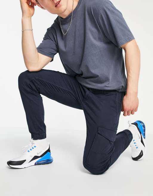 Jack & Jones Intelligence – Marinblå cargobyxor med smal passform och muddar