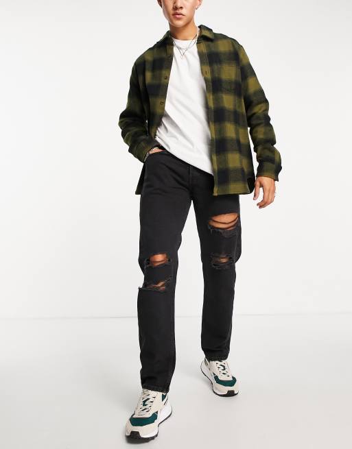 Jack & Jones Intelligence – Mike – Svarta straight jeans med revor