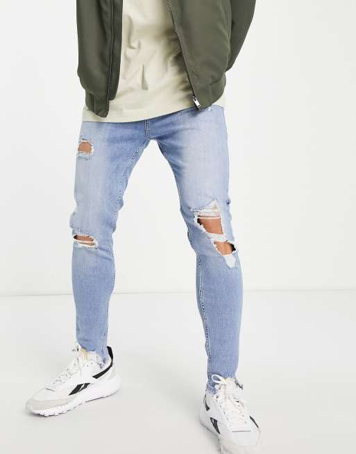 Jack & Jones Intelligence – Pete – Blå jeans med morotspassform och revor