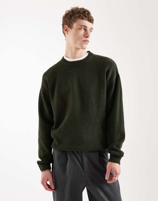 Jack & Jones – Khakifärgad, fluffig tröja i oversized fit med rund halsringning
