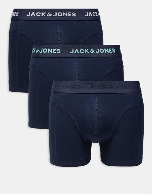Jack & Jones – Marinblå boxershorts med kontrastfärgade midjeband, 3-pack