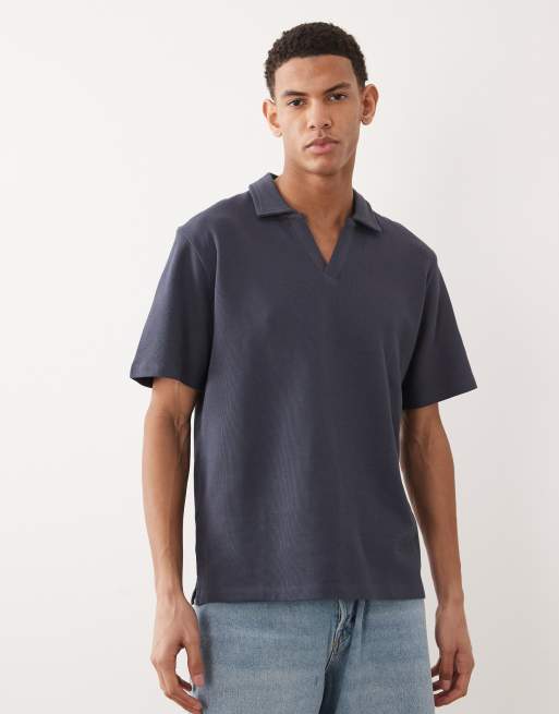 Jack & Jones – Marinblå pikétröja med slits vid halsen