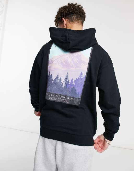 Jack & Jones Originals – Svart huvtröja i oversize med bergstryck baktill