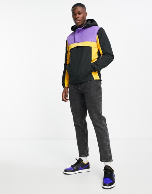 Jack & Jones Originals – Svart, lila och blockfärgad vindjacka i anorak-design