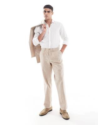 Jack & Jones – Premium – Beige, avslappnade kostymbyxor i linnemix, del av kostym
