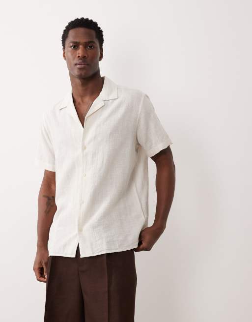Jack & Jones Premium – Gräddvit, randig skjorta i linnemix med textur