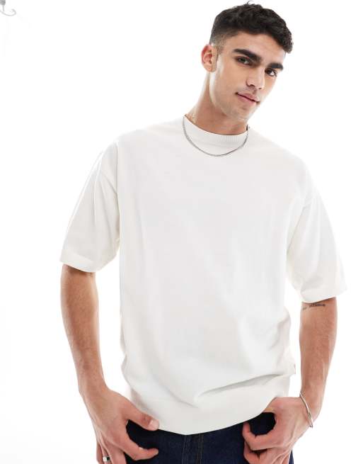 Jack & Jones – Premium – Gräddvit, stickad t-shirt med rund halsringning