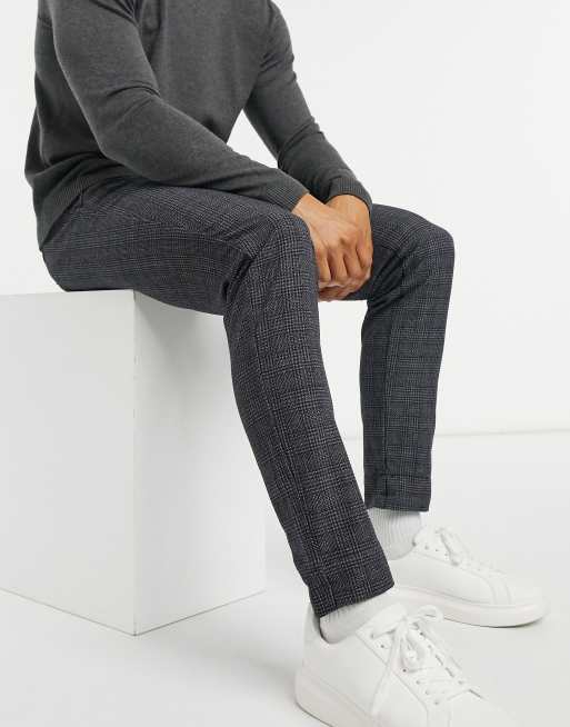 Jack & Jones Premium – Grårutiga kostymbyxor i jersey