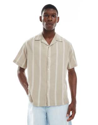 Jack & Jones Premium – Krämvit, randig skjorta i linnemix