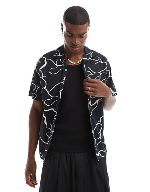 Jack & Jones – Premium – Marinblå, mönstrad skjorta med platt krage
