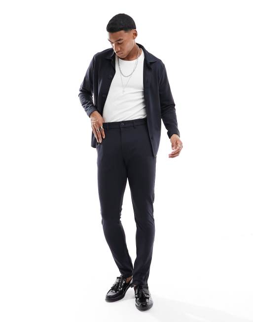 Jack & Jones – Premium – Marinblå, smala kostymbyxor i jersey