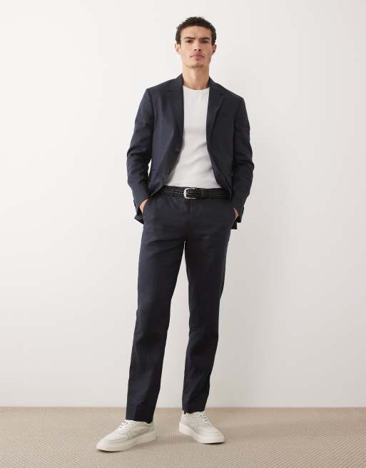 Jack & Jones Premium – Marinblå, smala kostymbyxor i rent linne, del av set