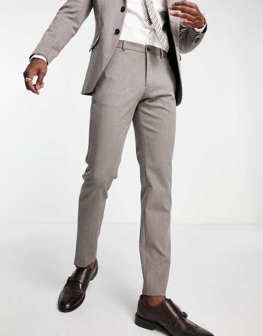 Jack & Jones – Premium – Sandfärgade kostymbyxor med smal passform och struktur